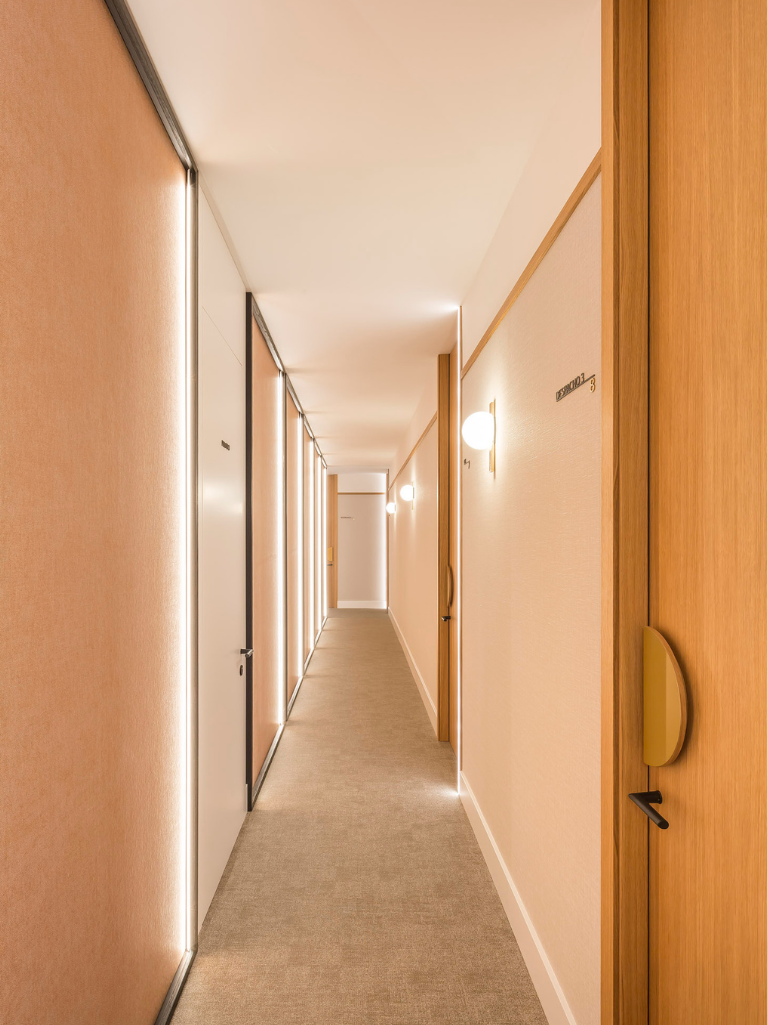 El interiorismo sanitario contemporáneo se inspira en una elegancia silenciosa, donde cada elemento tiene sentido y donde la calidad de los materiales, la proporción de los espacios y la iluminación construyen una atmósfera equilibrada.